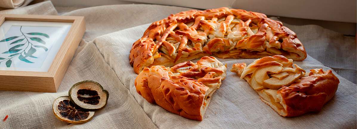 Открытый пирог с яблоками и корицей — это вкусное и ароматное угощение, приготовленное из свежих и сочных яблок, завернутых в тесто. Идеально подходит для любителей домашней выпечки, этот пирог станет прекрасным дополнением к чаю или кофе. Заказав весомую порцию, вы сможете насладиться им в кругу семьи, друзей или коллег.